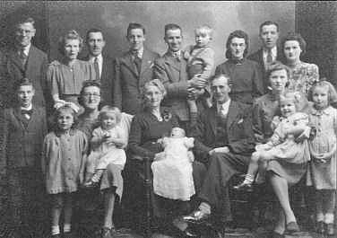 Top row-Ken, May and Fred, Tom, Seymour and son,Gwynneth(our daughter), Les and wife Olive, Second row-Ronald Fred's son and daughter Maureen, Seymours wife with their daughter, Lena with Dorothy's daughter, self (George), Dorothy and her daughter and end girl is Joan Bindon. (Michael was not born yet.)