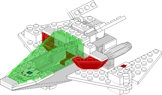The Nightstalker is a small stealth craft used in the surveilance of suspicious targets. It has a special communications computer that picks up any information on the Space Police SpyNet, using a special scrambler and coding device to keep top secret missions top secret. The Nightstalker is equipped with special folding wings that give it superior speed in atmosphere and in space. No weapons and weak shields make this ship an easy target. That is, if anyone can ever find one...