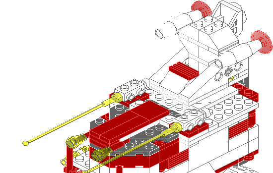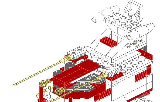 This impenetrable fortress on wheels was made famous during the Battle of Spica, where 7000+ Space Police Troops were killed and a Solar Snooper factory was destroyed. The Turtle is not only a heavily armoured troop transport (can carry a full complement of soldiers and equipment), but a powerful tank during ground warfare. It's two mounted cannons and forward laser batteries provide excellent support for the troops inside, while the two shield generators keep it safe during mobilization. The one drawback to the Turtle is it's thirst for energy. It uses so much power for weapons and shields, it often only lasts a half an hour before shorting out. Nevertheless it is one of the most feared vehicles in the galaxy, and Space Police has been trying to develop a countermeasure for this terror for months now.
