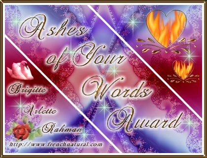 The following award was given to me by Brigitte. Thank you so much for your kindness!