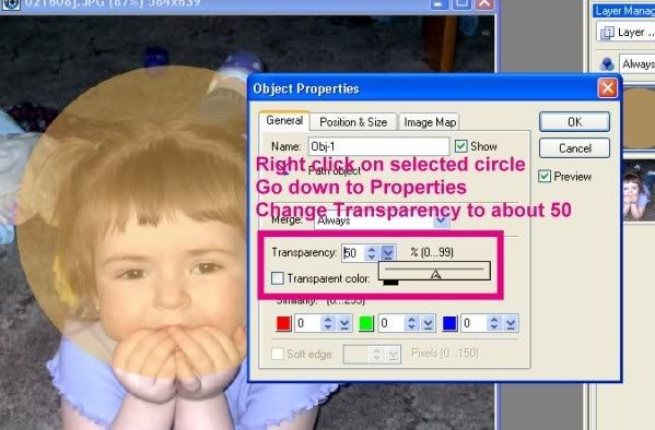 Hint: For better centering, right-click on circle, select properties, set Transparency at 50%. Change transparency back to 0 when you are happy with your selection. You may need to reduce the size of your image to get the image to fit in the circle the way you want it.