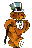 This is not your ordinary Teddy. This Teddy (nicknamed Bobo by the cob creating staff) has got a certain swing to his step and is dressed in a top hat and is holding a cane. Teddy is the perfect companion for Norns left on their own as he decreases loneliness, fear, anger and boredom. I got this cob from Helen's page. |