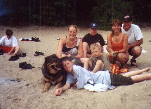 Top Row Left to Right -->Myself, Brenden (step bro), My mom, step dad Chris --> Bottom Row Our dog Chance, and my two other step brother's Andrew and Dylan. Plus on the FAR left you can see my step cuz Matty {Last day at KillBear near Parry Sound July 15th 2001}