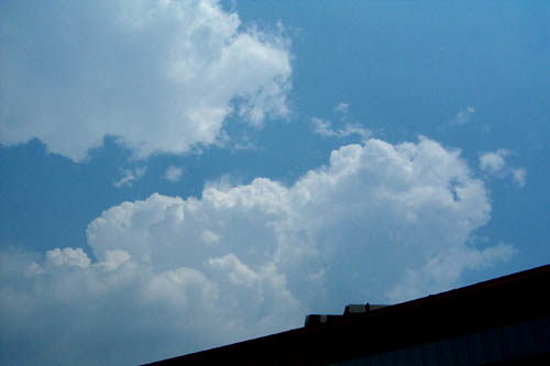 - After what felt like forever without any active weather the models were finally setting up for a classic day of severe weather. Things began heating up early in the day around 11am. By the time 12 came along cells were going up everywhere to the north west of Toronto. A severe thunderstorm watch was put out by Environment Canada shortly afterwards. On my way to picking up batteries for my digital cam I caught some pics of the TCU's going up to my N and NE. I knew today was going to be a long day! I was contemplating going out on a chase but opted not to, since the line was headed for my area anyways. Around 1:15 the sky started getting darker as the line approached Scarborough. The sky was boiling and scud tags were turning everywhere above me. This was probably the most impressive sight of the day. The Line past around 1.45 accompanied by brief heavy rain and lots of CC lightning, a few CG's. Most of the action was kept to my north and I now longer had the car :(. This was my first time using my new digital cam for weather and I am quite pleased :)... Have a look at some of my pics.