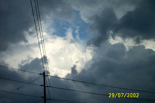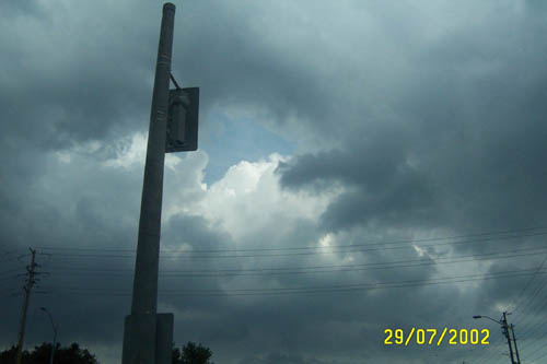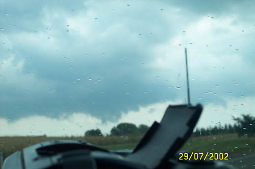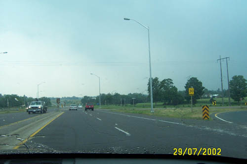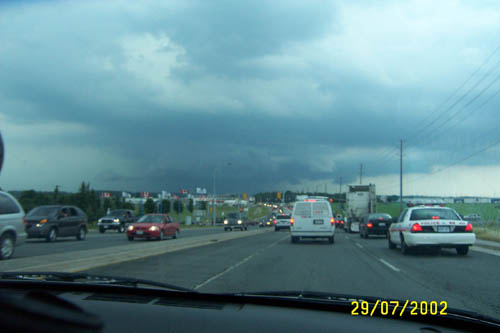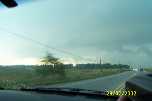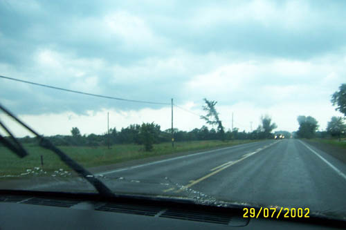We got out of the thick of things right before Nobleton, where power had been knocked out and the street lights weren't working. Branches and small debris littered the road. We stoped for gas but since the power was out the pumps werent working. While stopped at the station I took a nice pic of the back of the storm from behind. So we headed south.