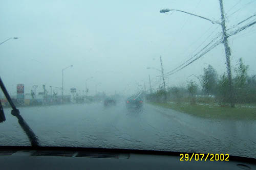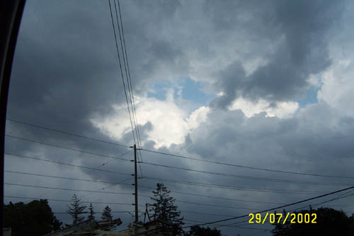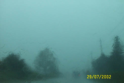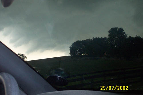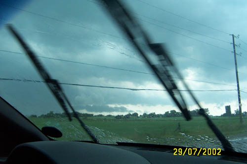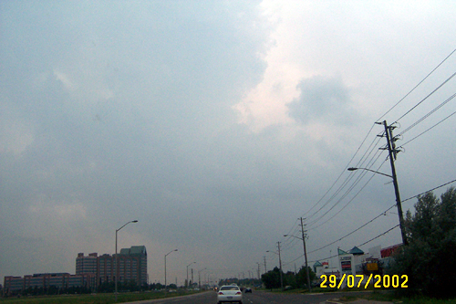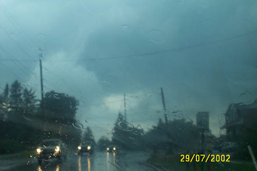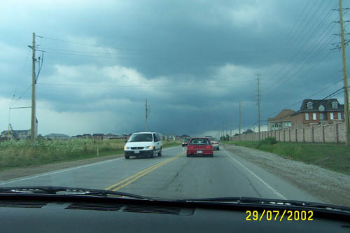 We then drove up Bathurst towards King Road. At King road I headed west towards the darker sky. When i reached King City scud was visible as you could see in the pictures. I punched the core of this storm between the 404 and Nobleton. I encountered lots of lightning, heavy rain, brief strong winds. It also got so dark that it felt like night and most cars had high beams on. I've added radar pics of the storm at this time.