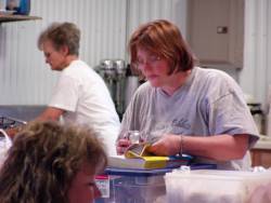 Carla working up storm and a fine member of our wonderful kitchen staff in the backround.