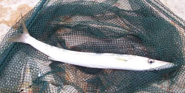 | August 6th - Ouside the Harbour Wall... lurks the fish with big teeth..! You've probably all seen the documentaries about the Great White Sharks in the Med and although not quite as big these Barracuda also have some seriously sharp fangs. This little fellow on the right took a small floating plug... who knows whats next..? |