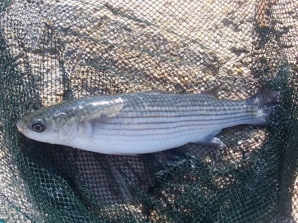 July 17th - New species... althought there's undoubtedly more to catch in the Med than we currently have done so far these are just some examples... On the left is something you'll recognise already, a mullet, and although catchable here as Dad will agree they're not necessarily as easy as you might think. Below on the left is whats known as a Bogue whilst on the right is a Saddled Sea Bream. And so long as you come across and catch em they all count...! |