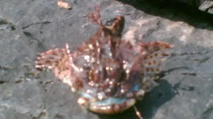 | Easter hols at Nefyn - UGLY...!!!... but no more so than Neil Higson - this Scorpion Fish that Sarah caught from the boat at Nefyn... the first of these in over 4 years and very possibly showing Morfa Nefyn as the best spot for any new species... flippin Red Mullet...mutter, mutter... |