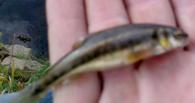 September 20th - Schoolboy Errors on the River Dove... as with expectations of Grayling Mark dug some worms beforehand only to find out he'd lost them when he'd got there, seemingly dropped into the river..! After nipping back to town for a tin of sweetcorn he managed this specimen on the left, only trouble is he's already caught one...more