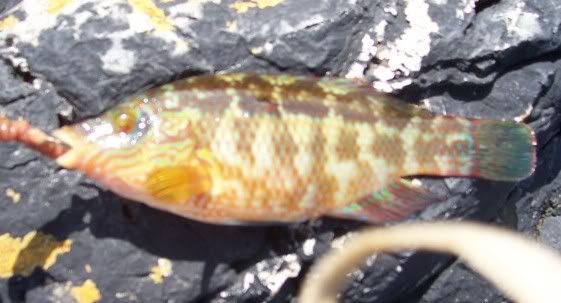 April 25th - Morfa Nefyn... has an abundance of fish species. Dad and John started us off this year with half a dozen including this Ballan Wrasse. Only trouble is they should have caught twice as many...more