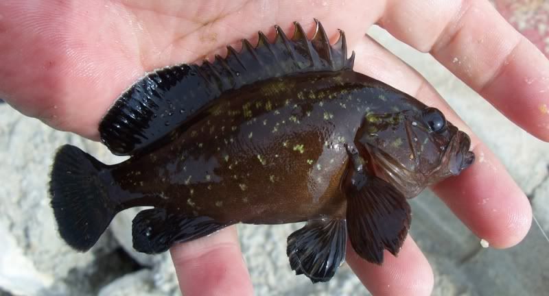 March 21st - Sitges Harbour Wall... today produced the first completely new species of the year. Although only small at the moment this cute little fellow on the right, a lime green speckled Dusky Grouper, has the potential to grow up to 5ft in lenth and over 130lbs in weight... more