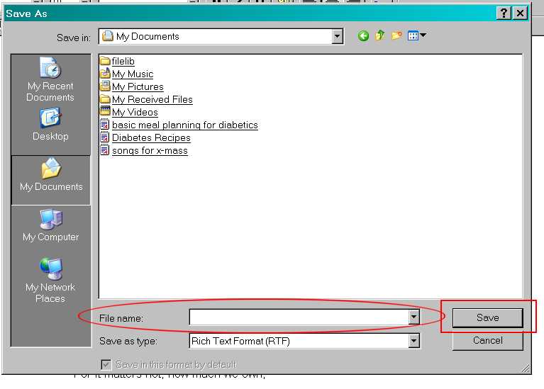 By default, your computer will generally prompt you to save in My Documents unless you have recently saved something in another folder.
