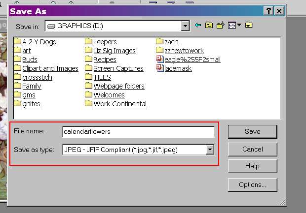 I named the file "calendarflowers" and chosen the file type as JPEG. All I