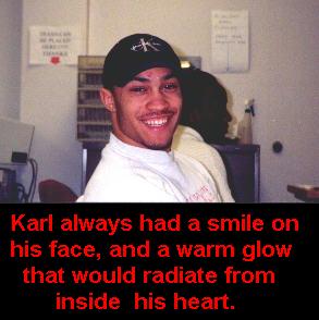 Karl was going to school to become a doctor. Karl was my friend. We shared laughs, as well as shared tears, and through the years Karl grew to be a source of strength in my life. Through all the tough times in my life, through my parents divorce, Karl was there for me, and I always stuck by his side.