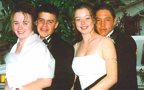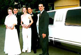 Kim and her boyfriend and Heather and her boyfriend Vince. After dinner they all rode in a big white Limousine.