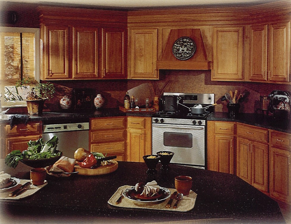 All drawer fronts and doors are handcrafted in top-grade cherry, then finished to an elegant luster in your choice of Natural, Light, Cinnamon or Harvest. Wall cabinet doors are available in three beautiful choices - arched, cathedral and square.