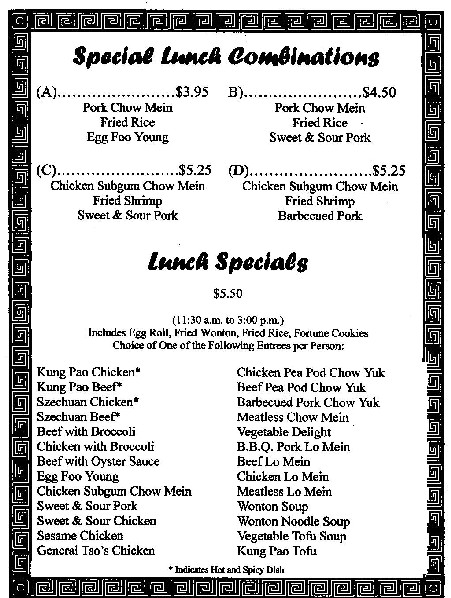 LUNCH BUFFET - $5.95 PER PERSON - AYCE