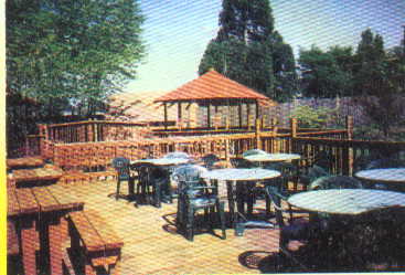 The Deck is a great place for outdoor parties during the warmer months. It features 2 gazebos, both with limited seating and dining room, a fish pond with a walk over bridge and a smaller pond with a fountain. |