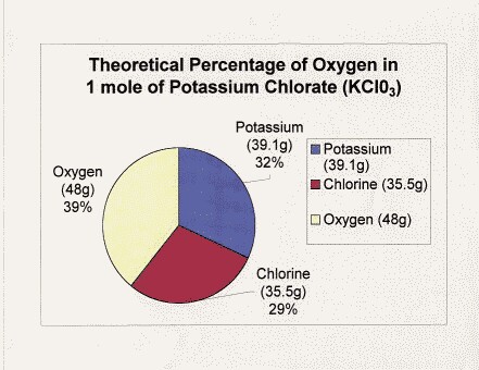 Important Note!!!: Here is our results from both experiments! Read this first!!! View Pie Chart of Actual Amout of Oxygen in Potassium Chlorate in Excel 97 format View Pie Chart of Theoretical Amount of Oxygen in 1 mole of Potassium Chlorate in Excel format |