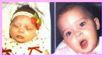 In the photo on the left, Gina is five weeks old. The one on the right I