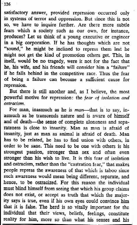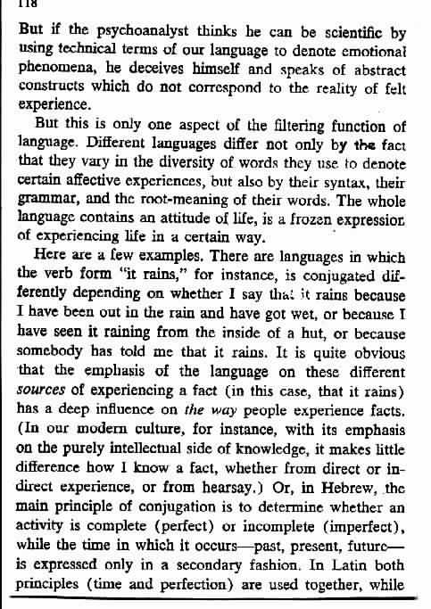Fromm explains the three components of what he calls the "socially conditioned filter" of culture: Language, Logic, and Taboos. While any culture will have a "social filter," Fromm focuses on American Culture.