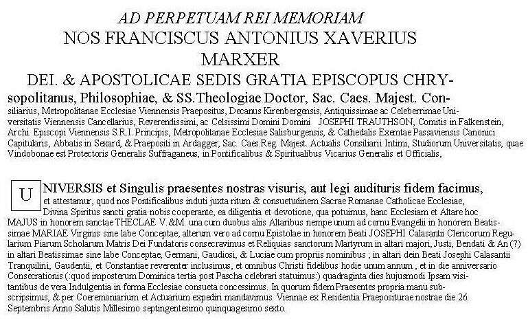 WEIHE DER PIARISTENKIRCHE ST.THEKLA AM 26.9.1756