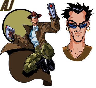 Thanks to the power infused from his mystic alien amulet, AJ has become the ultimate marksman, adept with any weapon at hand. The way he handles his incredible, futuristic armament, this guy puts the 'sharp' in sharpshooter! Armed with a pair of exotic laser blasters, AJ moves into action with the grace of an Olympic athlete, striking his target with pinpoint accuracy.