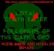 To identify and brand each of our select number, we use the Dark Mark. However, online, this proves to be, ahem *difficult*, so instead we, the Dark Lord and I, have come up with this banner.