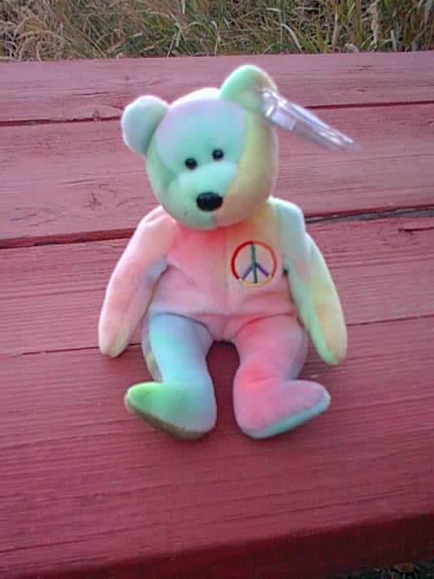 Back ears: One is greenish and the other is a pinkish.