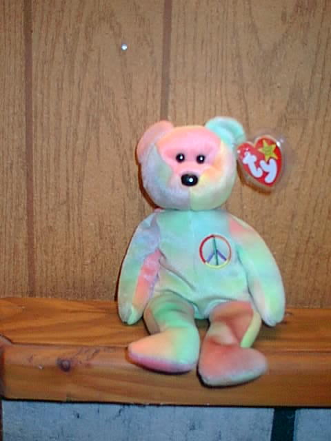Front ears: One is very light pink and the other is a very light green with blue highlights.