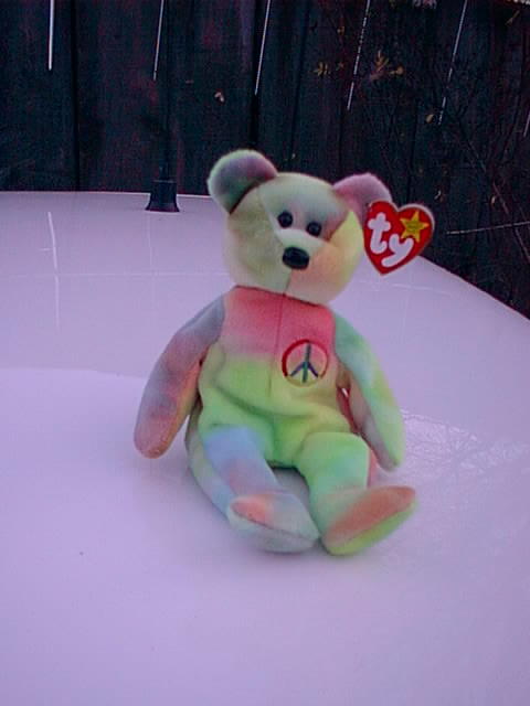 Back ears: One is mostly light lavender, the other is all bright green.