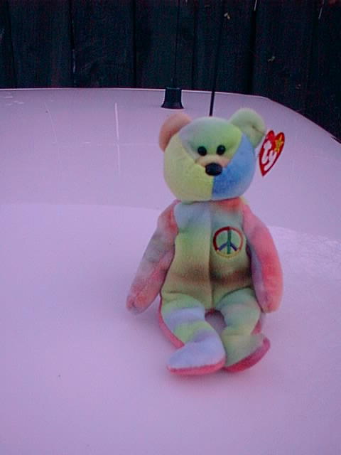 Back ears: One is green on both sides with yellow in middle and the other is almost completely NEON pink.