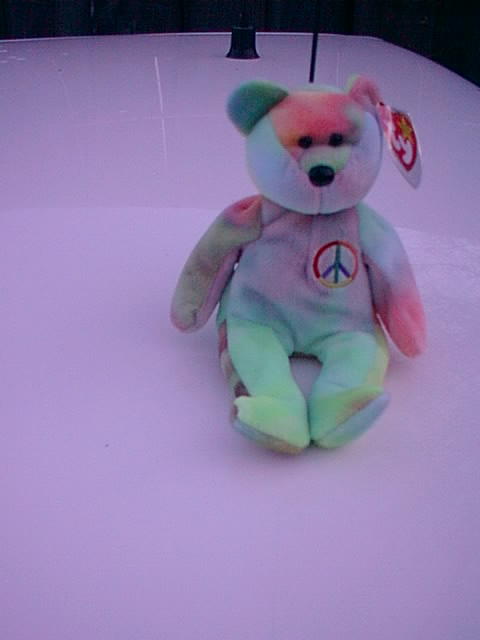 Face: One is light blut with pink around nose and yellow near back of head, the top triangle is mostly bright pink with orange with spot of green near ear and nose is green, the other is a swirled mix of baby blue and baby pink.
