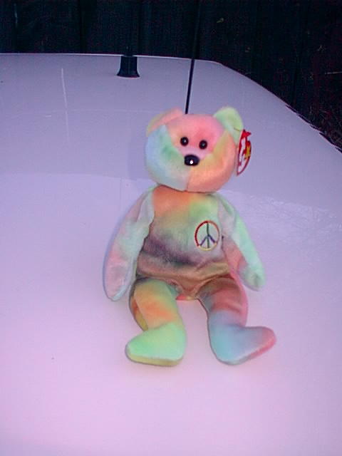 Front ears: One is dark lemon yellow with pink and the other is all lime green.