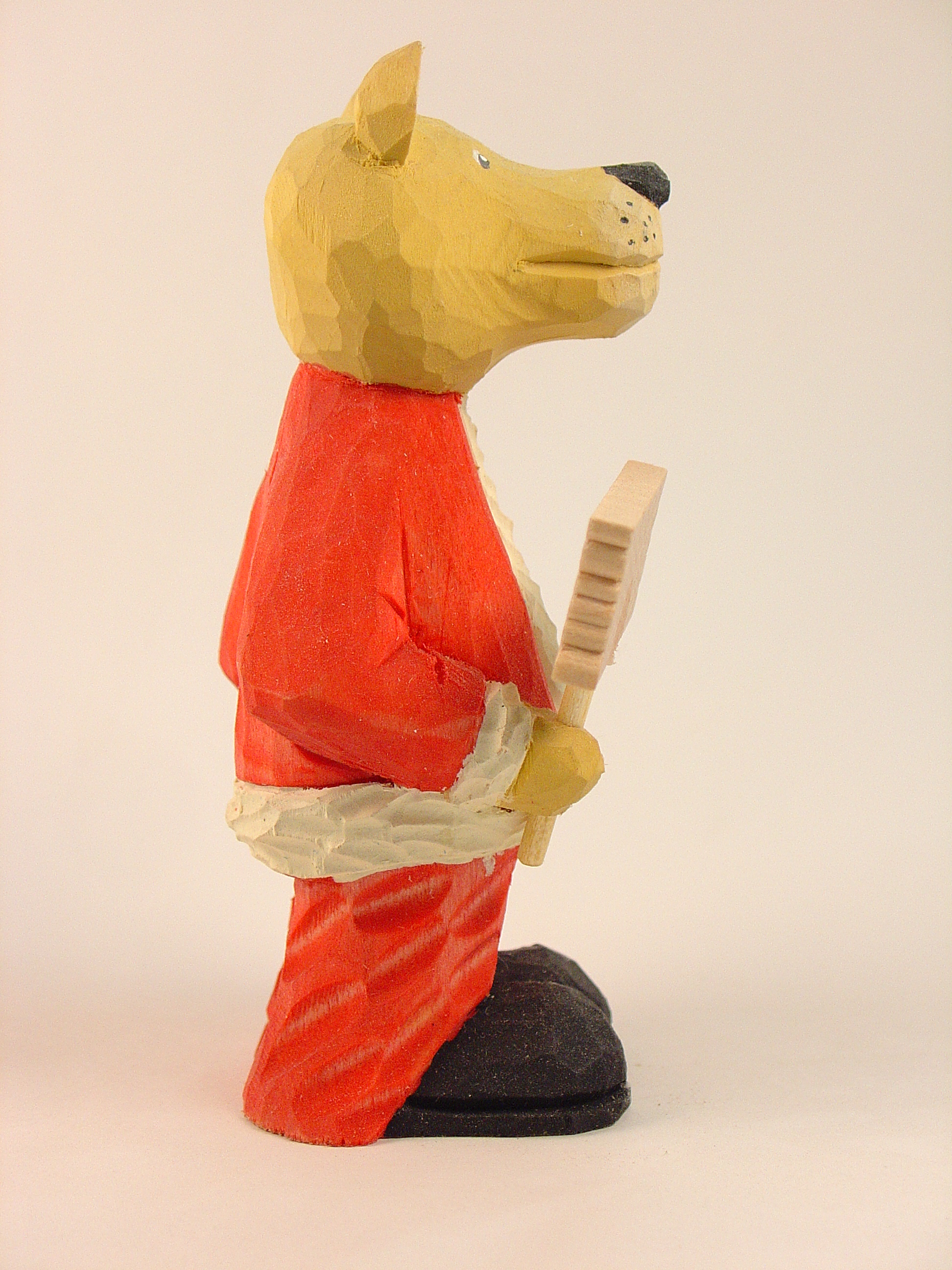 When it comes to painting my carvings, I spend as much time with the details of the eyes and clothing as I do carving. Each carving is painted with acrylics and then sealed by taking a dip in linseed oil.