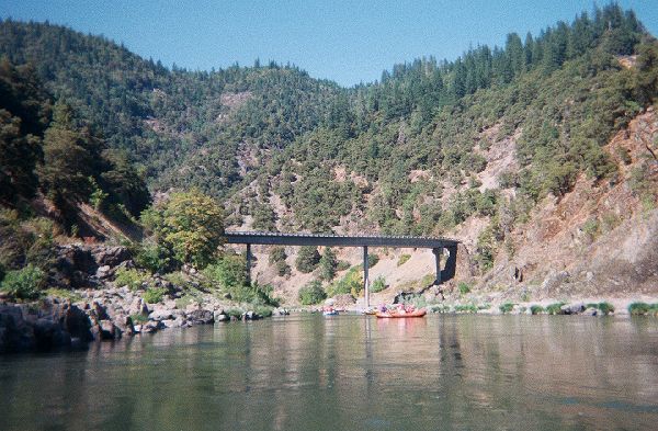 If you miss this take out it's three days to the next one. This is the end of the "scenic section" of the river. From this point on it's the "Wild and Scenic" section with no roads or motors allowed. Very beautiful run and I hope to get some pics scanned of a fall float down this "Lower Rogue". |