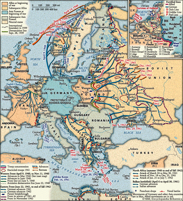 situatie van 1940-1942 in Europa en Noord Afrika overzicht van de invasie in Normandië nog een overzicht