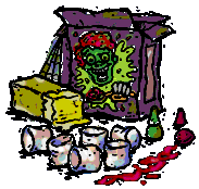 2 cups chocolate chips 2 tsp. corn oil 60 mini marshmallows 5 thin black licorice whips 20 tiny red hot candies | ![]() |
