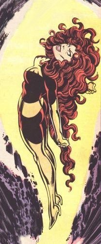 History:Dark Pheonix came to be after Jean Grey was possessed by the pheonix force entity to save the Sh'iar. After the Pheonix had finished it's job, it sacrificed itself, along with Jean. But the pheonix ended up rising from the ashes and so did Jean, but it had gone insane, wanting to stay a part of Jean, wanting to stay on earth and use Jean as it's host. The Pheonix entity destroyed an entire solar system in it's rage, and tried to destroy the X-Men as well, who fought desparately to get Jean back from the insane creature.