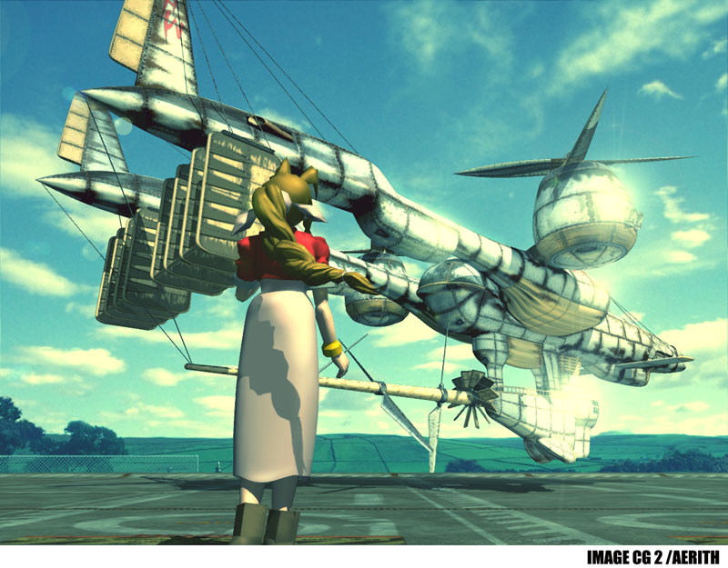 Aeris infront of the Highwind
