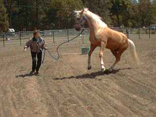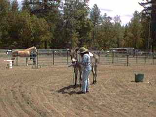 These two were awesome together! Jan had Justin sidepass over some 5 gallon buckets, away from her and back to her. He picked up a hanky and handed it to her while she was riding him. I'm looking forward to Jan helping me learn to do some of the things they do.