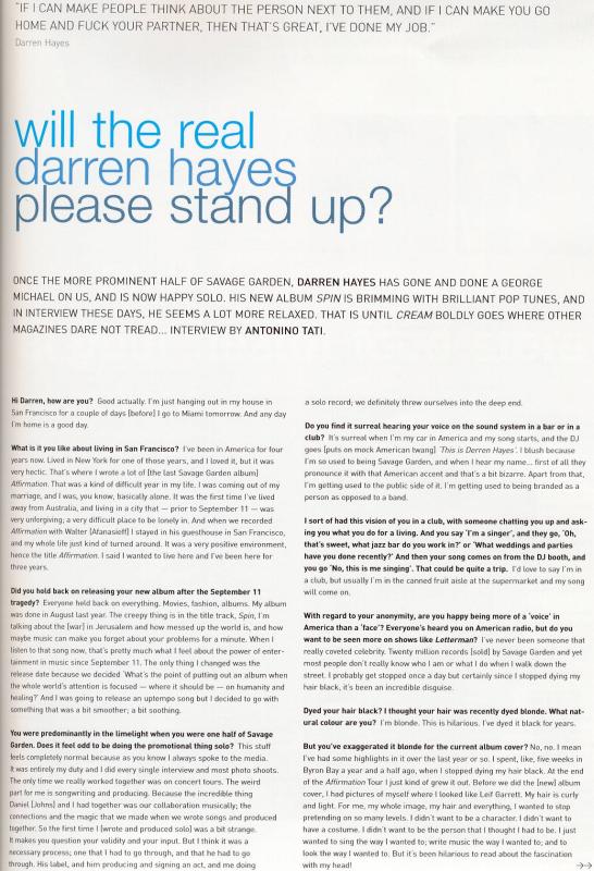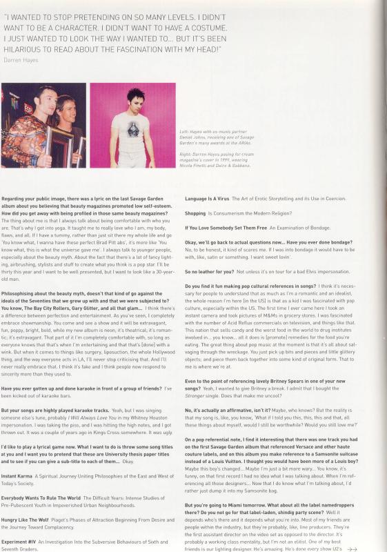 mock American twang) 'This is Darren Hayes.' I blush because I'm so used to being Savage