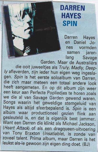 Spin is the first solo album from Darren Hayes.He's coming right away with another whole