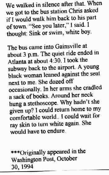 Josh Solomon, white, became black...and went to the Deep South in Georgia. Attempting to replicate...loosely...John Howard Griffin's participant observer journey of 1959/60, this is Josh's short story.
