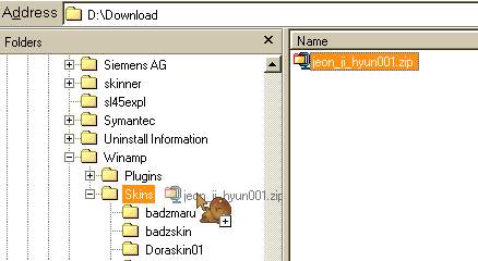 ทำในลักษณะ Drag and Drop ไปยังโฟลเดอร์ Skin (C:\Program Files\Winamp\Skins)