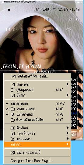 ขึ้นมา คลิกขวาที่หน้าต่างของ winamp เลือกที่หน้าตา (Skin) แล้วเลือก คำว่า