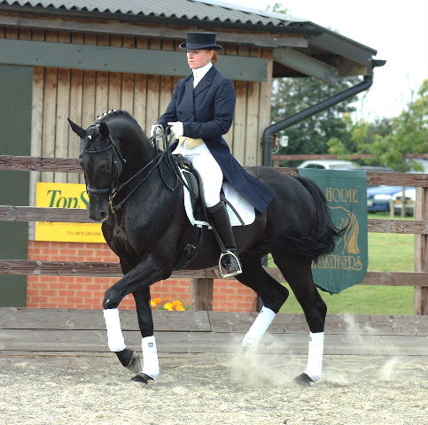 Great musclage, shape, head carriage and movement gain him respect in dressage arena.