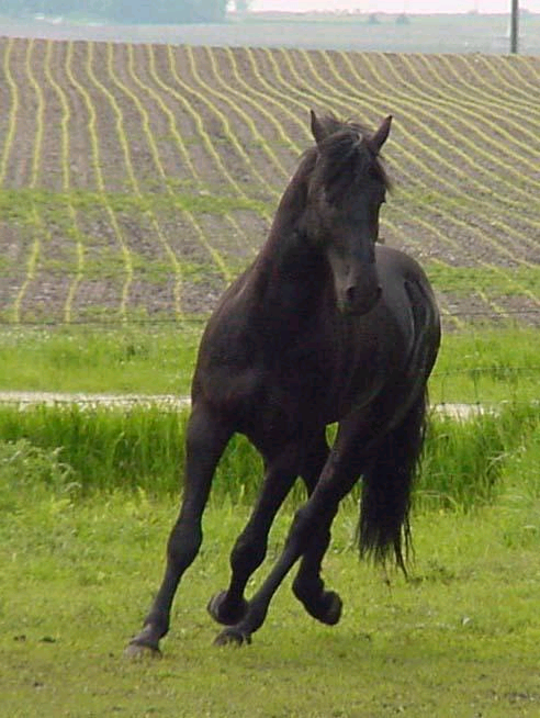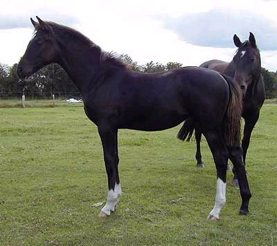 His progeny will most likely have very little markings, height, muscle, power and an energetic nature as his first two have, they are also both very dark.
